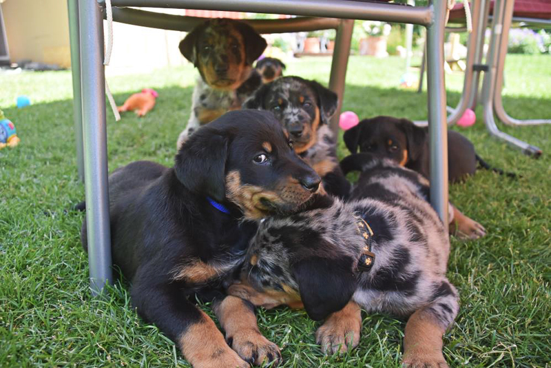 Die letzten beiden Welpen Aldo und Amber bleiben bei uns, damit unsere Menschen weiterhin sehr aktiv bleiben, d. h. wir sind jetzt ein großes Rudel – vier Beaucerons und zwei Menschen.